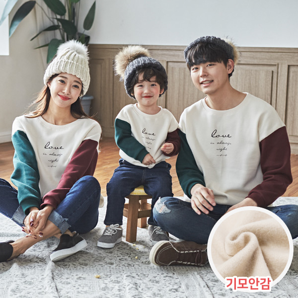 패밀리 기모 배색러브 맨투맨 긴팔 19D07